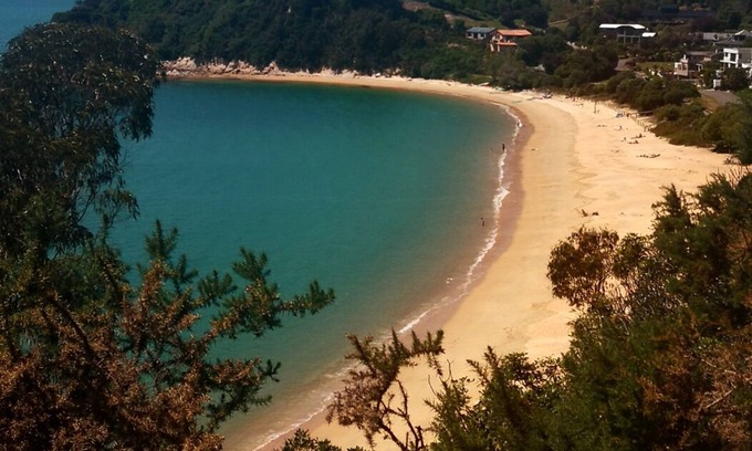 Beautiful secluded and private home with views and short 2-5 min walk (200m)to pristine golden sand beach, and turquoise water, perfect for swimming. All new furnishings and a true home away from home. Located walking distance to hiking and biking tracks or walk along beach or over the track at high tide to the local store, restaurants and the launching area for the Abel Tasman adventures. Our home is privately situated with open space both behind and in front of us and home to a wide variety of native trees and birds and the property is within the 200metre Coastal conservation and Ryder Memorial Park.