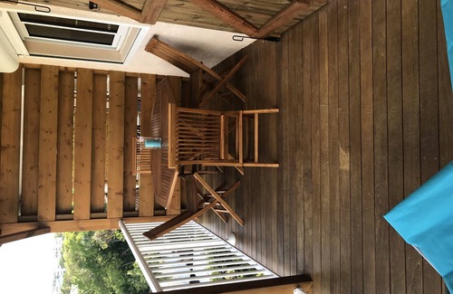 Beautiful terrace with dining area, location on a hill, very well ventilated.