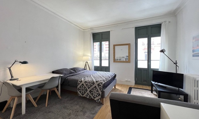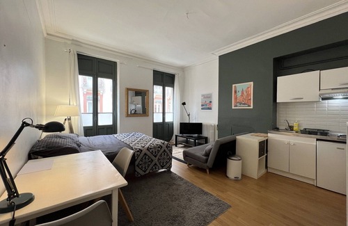This charming studio offers a comfortable and convenient stay in the heart of Toulouse, located in the vibrant Matabiau district. The studio features a comfortable 140x190cm bed, a small lounge area, and a modern bathroom with a shower, WC, and basin. Towels and sheets are provided, ensuring a restful stay. The space is equipped with high-speed Wi-Fi and a Smart TV with public channels and streaming services like Netflix and Disney+, perfect for relaxation or entertainment. Ideally situated near the Matabiau metro station and SNCF train station, the studio is within walking distance of local shops, cafes, and restaurants. You’ll be able to explore Toulouse with ease, thanks to excellent public transport links right at your doorstep. Whether you’re here for business or leisure, you’ll enjoy the dynamic atmosphere of the neighborhood while having easy access to all the city has to offer. The fully equipped kitchen includes a fridge-freezer, microwave, electric hob, and coffee maker, making it easy to prepare meals or enjoy a coffee break. The apartment also features a dining area with two high chairs, ideal for enjoying meals or teleworking. Though the apartment has some elements of the old, it is tastefully renovated and regularly maintained, ensuring a comfortable and pleasant stay. Winter heating is available, keeping the space cozy during cooler months.