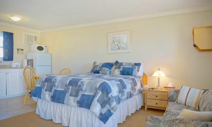Our queen suite features free high-speed WiFi, air conditioning, a refrigerator, microwave, and complementary coffee, tea, and bottled water. Coin laundry is available and there is free parking located outside each room.