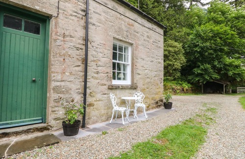 Amenities: Electric storage heaters with electric fire and open fire. Electric oven and hob, microwave, fridge, washing machine, dishwasher, TV with Freeview, DVD, radio, WiFi, selection of books, games and DVDs. Fuel and power inc. in rent, fuel for fire on honesty box basis. Bed linen and towels inc. in rent. Cot and highchair on request. Ample off road parking. Shelter for canoes and bikes. Front sloping garden and separate lawned area 50 yards from cottage. Sorry, no pets and no smoking. Shop and pub 2 miles. Note: The front garden slopes steeply down to a stream. Note: Property accessed via 0.7 miles of uneven rough track, care to be taken. Note: The access road to the property next door passes the front door of this cottage. There is no signal in the cottage, however you will receive it outside of the property.