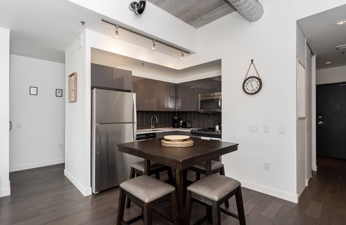 1 bedroom, 1 bathroom, a Smart TV set up to enjoy Netflix(bring your credentials!), and complimentary WiFi. The kitchen is equipped with stainless steel appliances, quartz countertops and completely stocked with cookware to prepare your favourite gourmet meal!