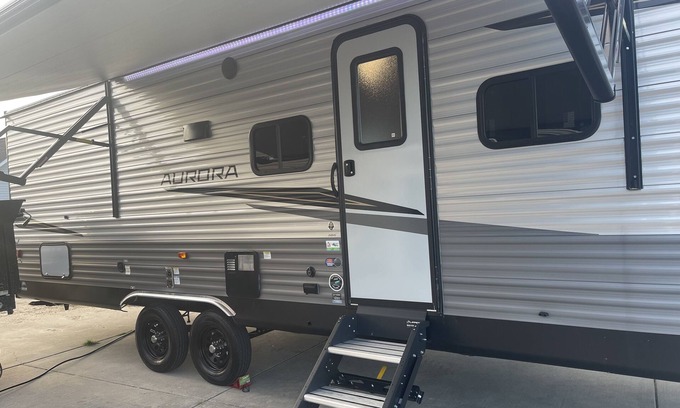 This 2023 aurora is perfect for any family getaway. It features a homey living room with kitchen utilities, tv and cabinet space. The front bedroom has a queen bed, storage cabinets, and USB ports on both sides. The bunkhouse area includes bunk beds with USB ports as well. You have an awning with indoor/outdoor speakers. This camper is ready to grill out, play some cornhole, shade or sun. Bring your family to create memories that last a lifetime!