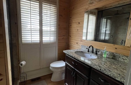 Large (over 4000 sq ft), beautiful 5 bdrm/5 bath house with fantastic views in a great location. The house is in a quiet cove for great swimming but close to open water for easy boating activities. Unobstructed views across the lake facing east making for great afternoon and evenings on the patio taking in the scenery. Basement has a wet bar and a pool table with a sound system that plays indoor and outdoor. Sleeps 13 in beds. You can add two more if you bring a blow up mattress.