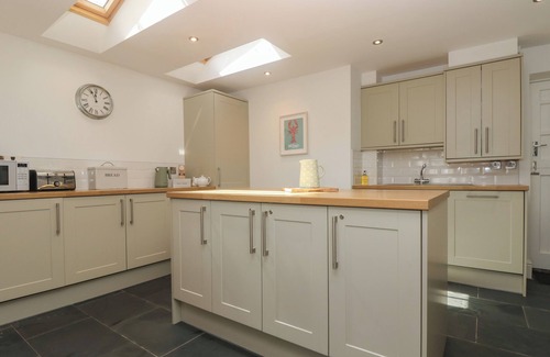 Panacia consists of an open-plan living space with kitchen with electric oven, ceramic hob, microwave, fridge, freezer, washing machine, tumble dryer, dishwasher, a dining space for six and a sitting area with Smart TV and woodburning stove. The bedrooms consist of a king-size (zip/link, can be twin on request), a king-size with en-suite shower room, and a second-floor twin with smart TV and en-suite cloakroom, serviced by a bathroom with bath, walk-in shower, basin, and WC. Outside there is a front patio with furniture. Parking in nearby public car park: Caffa Mill car park at Station Road. Within 1 mile or less you will find a shop, a pub and a beach. No pets and no smoking. WiFi, fuel, power, bed linen and towels included in the rent. Highchair and travel cot available. Escape to the coast of Cornwall with a stay at the beautiful Panacia. Note: Weekly parking permit is available. Note: Access required to adjacent property through patio. Note: External flight of steps.