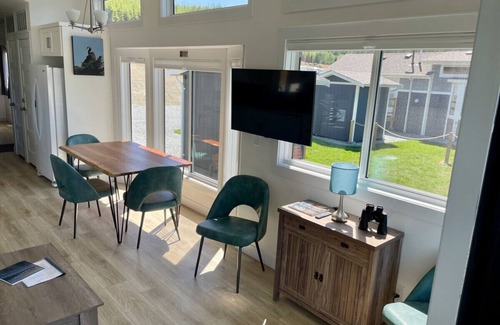 Welcome to Whale’s Breach, your oceanfront retreat on North Vancouver Island. This 2024 Park Model Cottage offers stunning views of Johnstone Strait and access to world-class wildlife and boating destinations like Blackfish Sound and the Broughton Archipelago. From your deck, spot humpback whales, orcas, seals, otters, and eagles—creating unforgettable moments in nature.