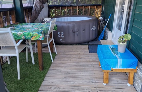 25 m2 chalet + screened terrace, private spa, garden, shared pool is located in Lorgues. 25 m2 chalet + screened terrace, private spa, garden, shared pool provides accommodation, featuring Wellness Facilities, Hot Tub, Balcony/Terrace, among other amenities. This Ski Chalet features Wellness Facilities, Hot Tub, Balcony/Terrace, to make your stay a comfortable one.