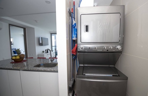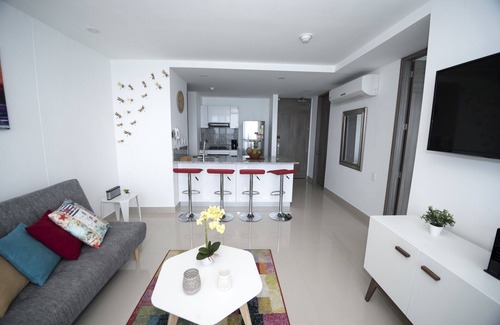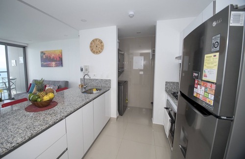 Perfect 1 bedroom apartment in the 25th floor of one of the newest, most representative building in Cartagena. Has 1 bedroom, living room, 2 bathrooms, kitchen, and a balcony with a spectacular view over the Cartagena beach and the city center on the far right. Perfect for a couple vacation or a business trip. Apt is suitable for 1 - 4 guests maximum. There is a queen bed in the main bedroom and a sofabed in the living room. We look forward to hosting you! It's one of the most beautiful, elegant and perfectly located building and apartment in Cartagena. Everything in the apartment is completely new and thought especially to make your stay here perfect! There is 1 bedroom, a living room, kitchen, 2 bathrooms and a very beautiful balcony. You will love staying here! The apartment has: Fully equipped kitchen, washer and dryer, towels, sheets, iron, hair dryer and very nice carefully selected furniture in the entire apartment. A maximum of 4 guests can enter the building and need to be previously registered. To have access to the gym you need to reserve with reception a day before the day you wish to go. I will not be available in person but I have staff that helps me with everything in Cartagena. I'll be always on top of what is happening. So you can call me or write me and I'll send someone to check in case you need help with anything. The Bocagrande (Big Mouth) area contains the bulk of the city's tourist facilities, such as hotels, shops, restaurants, nightclubs and art galleries. It is located between Cartagena Bay to the east and the Caribbean Sea to the west, to include El Laguito (The Little Lake) and Castillogrande (Big Castle), two neighborhoods. Bocagrande has long beaches and commercial activity found along Avenida San Martín Transportation is easy to get on this part of Cartagena. BocaGrande is one of the most exclusive sectors of Cartagena. Lots of great restaurants, hotels, stores and only a 7-10 min drive to "La Amurallada" or the city center. When you register you will be given a bracelet. Please do not remove this. If you loose it you'll have to pay 20,000 colombian pesos for each bracelet lost. Only people registered in the apartment will be the ones allowed in the building. To register someone you must send me full names and passport numbers / cédula 24 hours before arrival. The building doesn't allow other visitors. In this apartment you can register maximum 4 people in total.