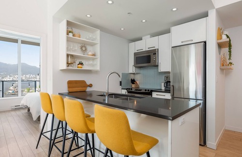 Welcome to our charming penthouse suite! Two patios offer breathtaking views of downtown Vancouver, the ocean, and mountains. Immerse yourself in a happy, inviting atmosphere created through detailed interior design. Only 5 minutes from Downtown, our location is perfect for exploring the city. Convenient highway access and a variety of excellent restaurants within walking distance enhance your stay. Experience comfort, convenience, and stunning natural beauty in our delightful VRBO.