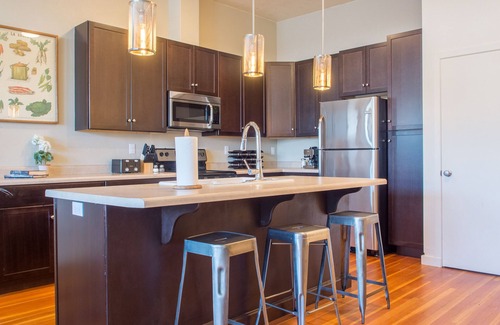 Located on the corner of historic 6th and G Street in downtown Grants Pass, this two-bedroom loft is walking distance to restaurants, shopping, and entertainment. The loft features two open-concept bedrooms and an open concept kitchen and living area, perfect for entertaining. The entire space is available for guest use. This unit is located close to a restaurant who has entertainment on the weekend, some noise can be heard, but this is city life! There is a laundry facility. It is in a common area, used by three other lofts. These facilities are coin-operated. The loft is located on the second floor, accessible via stairway only.