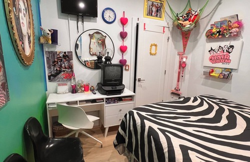 Welcome to my dreamland! Inside you will find a mixture of vintage finds with a focus on pop culture + 80s/90s aesthetic , along with a modern maximalist flair. Enjoy my eclectic album collection and original Nintendo Entertainment System. You will have full access to whatever treats are in the fridge, a sometimes stocked pantry and bar cart. Natural light beams into this apartment all day long! We are a pet friendly home and include a large crate, food container and toys for your furry friend.