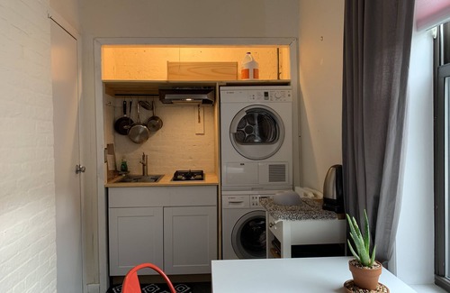 This stunning 2 bedroom unit is located in a historical landmark of Brooklyn Academy Music which is across the street. 3 min walk to Atlantic Avenue-Barclays Center Station and it is accessible almost all the metro lines. Private Entrance, in the middle of everywhere. It is perfect for people who want to mainly dine out during the stay, however, a dorm size refrigerator and a microwave and stoves are provided for light cooking.