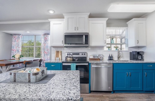 The full kitchen is fully equipped with everything you'll need to prepare delicious meals during your stay. You'll find modern appliances, plenty of cookware, dishes and utensils to serve your meals.