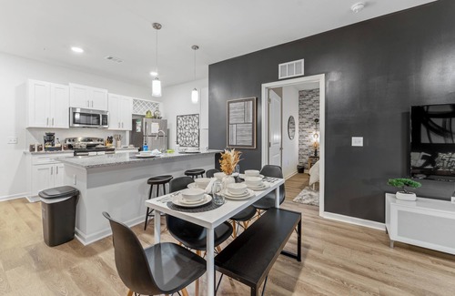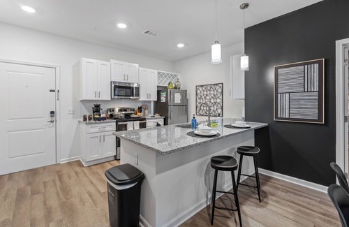 These apartments are gorgeously nestled in nature, with over 12 miles of recreational trails. It's part of a master-planned community with amenities designed to make you feel like you're on a year-round vacation. Poolside tanning chairs, cornhole, poolside grill, bikes that you can take at leisure, marshy / woodsy views all around, and complementary beverages are just some of the key amenities that make staying here so special.