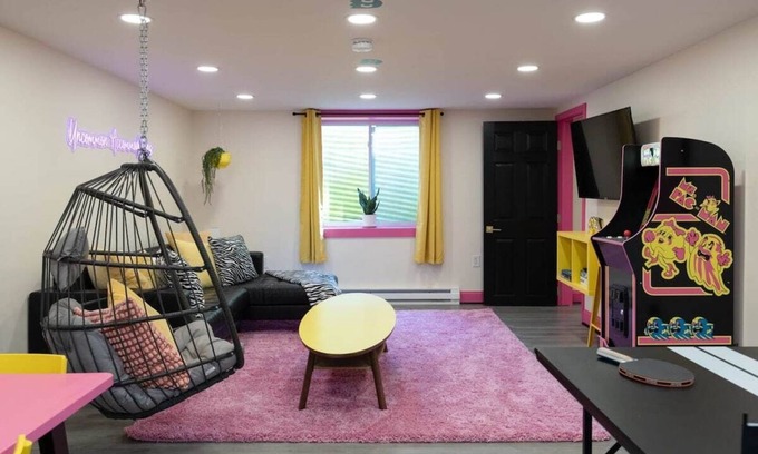 Indulge in some friendly competition with a thrilling game of Ms Pacman on the full-sized arcade, or engage in a friendly ping pong tournament in our dedicated gaming area. For those seeking ultimate relaxation, our private 2-person sauna is the perfect place to unwind and rejuvenate. Additionally, the clawfoot tub in the apartment provides a touch of vintage elegance, allowing you to luxuriate in a soothing bubble bath and wash away the stresses of the day.