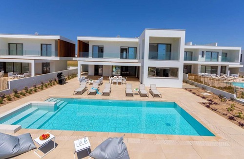 Brand new 3 bedroom villa, situated on a exclusive gated conclave, with stunning seas views and only minutes from the coastline. The interiors are sleek and contemporary and finished to high standard. The open plan ground floor has a modern lounge with sliding doors to the pool area, making the room light and airy, the kitchen has all the modern appliances as well as a breakfast bar and you will find dining facilities to entertain your family and friends. on the first floor you will find the 3 bedrooms 2 doubles and a twin all enjoying their own shower room, all have a balcony and a TV. As you head outside the area does not disappoint, with fabulous sea views and your own pool so you can make the most of the Cypriot sunshine. Al fresco dining is the order of the day, under the shaded terrace, why not pop on a few sausages and halloumi on the BBQ as you take in the vista. If you want to work off your lunch there is a gym on the lower level as well as a sauna and shower room. The surrounding countryside is flat and open, unspoilt with fields and orchards all around and a lovely peaceful ambience perfect for unwinding. The charming village of Kiti is nearby, with plenty of restaurants and traditional tavernas to choose from in the square. You can really get a feel for traditional Cyprus here and it is a great place to explore what the rest of the island has to offer. The sea in front of the villa can have strong under currents, so whilst it is beautiful to look at, please use Careta bay beach just a 20 minute walk away for swimming. All bedroom and bathroom linen is included. Bath towels are also provided. This property comes with Free Wi-Fi, Free Air Conditioning, Free Cots, Free Highchairs.