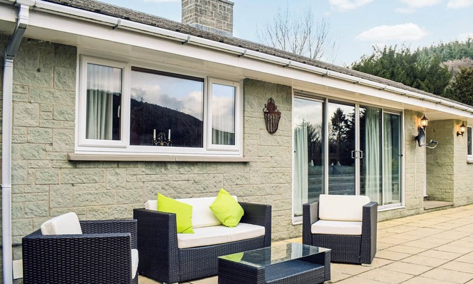 This detached Bungalow enjoys lovely views of the forestry to the front of the property. There is a large driveway with parking for multiple cars. Set all on one level, the kitchen has a breakfast bar and high stools alongside being well-equipped with all the necessities needed to cook a grand meal. The living room shares itself with the dining room and is a large living space with comfortable seating and even has Sky TV with Netflix and Now TV. In the evening, you can cosy up next to the wood burner. Coming back from a long hike, you can relax those tired muscles by enjoying a dip in the jacuzzi bath. The three bedrooms boast two double beds and a single bed, perfect for those fun family holidays. On those warmer days and nights, there is plenty of seating in the garden to enjoy an alfresco dinner. For those keen cyclists, there is a bike store where they can be put away for safe keeping. Pub 36 yards.