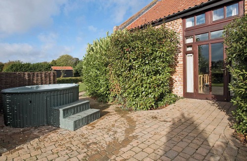 Shower Room: Cubicle Shower, Toilet. Garden with patio. Hot tub (private).. Tucked away down a country lane in the heart of Broadland, and enjoying glorious views across open fields, a range of handsome barns has been tastefully converted to create the attractive cluster of cottages we offer here. Some nestle under their traditional Norfolk thatch, all are very comfortably appointed and each enjoys its own individual patio. From the cottages, a gentle and tranquil rural landscape dotted with ancient churches, wind pumps and nature reserves, among a myriad other delights all under vast, arching East Anglian skies, offers a wealth of opportunity for enjoying walking, cycling and bird watching. Nearby How Hill nature reserve, with its marsh meadows, dykes, woodland and open water, is well worth exploring and the wider surrounding area supports a host of attractions. Riverside pubs and cafés are plentiful and a number of Broadland centres offer bike hire or canoe hire (possibly the most delightful way to discover the lovely reed lined waterways and their abundant wildlife) and visitors can also hire boats at nearby Potter Heigham, 4 miles, or take a pleasure cruise from bustling Wroxham – the capital of the Broads and home to the ‘world’s largest village store’ as well as the train station for the Bure Valley narrow gauge steam railway. Close by, BeWILDerwood, a magical tree top park, promises children a day to remember, and lovely dune backed sandy beaches are a short drive – Sea Palling lies just 6 miles away. For lively family fun, visitors need look no further than Great Yarmouth and its famous pleasure beach, or Pleasurewood Hills theme park, whilst Cromer also offers traditional seaside entertainments including a renowned end of pier show. Bygone museums, craft centres and Blickling Hall (National Trust) are all within an easy drive, as is the medieval city of Norwich with its magnificent cathedral, castle, galleries, museums, cinemas, theatres and excellent shopping. A little further afield on the north Norfolk coast, seal watching boat trips can be found at picturesque fishing villages, many of which also boast pubs and restaurants serving superb, locally caught seafood. Coarse fishing is available on the lake opposite the properties just 400 yards away, and the pretty village of Ludham, 1 mile, boasts two pubs and a good range of shops.. All properties: Gas central heating, electricity, bed linen, towels and Wi-Fi included. Travel cot and highchair. Patio with garden furniture. Fishing on-site, 400 yards. Parking. No smoking.