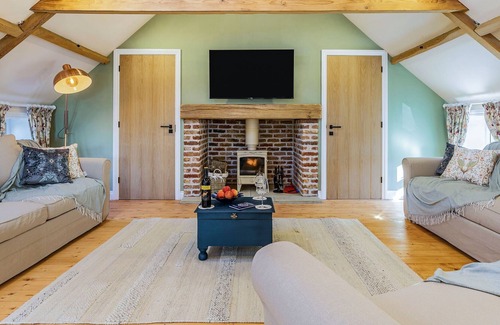 Living area: With wood burner, 50" Smart TV and double sofa bed.