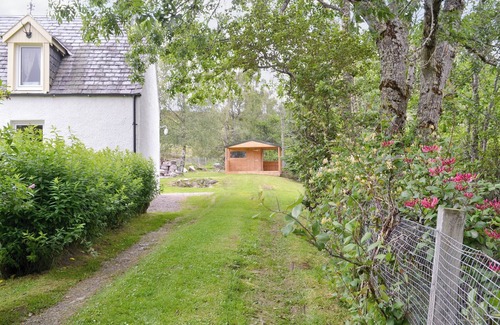 Bedroom 3: Double (4ft 6in) Bed. Electric heaters, electricity, bed linen and fuel for multi-fuel burner included. Cot and high chair available on request. Telephone - incoming calls only. Patio area with garden seat. 20-acres of moorland. Private parking. No smoking. Please note: This property has a private water supply.. A bright, renovated highland cottage, peacefully situated in the hills, high above Drumnadrochit, only 3½ miles away. Beautifully secluded, with a lively burn bubbling past. Reached by 1½ miles of fairly steep tarred road then ¾ of a mile of track through a birch wood. Fishing permits can be obtained locally. A perfect holiday retreat. Glen Affric and the west coast are well worth a visit, with Inverness only half an hour away. Shop and pub 3½ miles.
