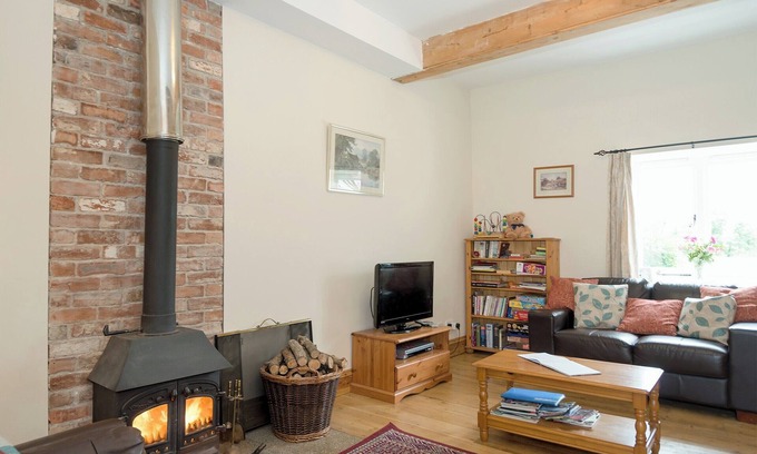 Bedroom 3: 2 x Single (3ft) Beds. Oil central heating, electricity, bed linen, towels and Wi-Fi included. Initial logs for wood burner included, remainder at cost. Cot and highchair. Drying facilities available on request. Enclosed cobbled courtyard with garden furniture and barbecue. Private parking for 3 cars. No smoking. Please note: There is farm machinery, a canal and a pond in the grounds.. Adjacent to the owner’s listed farmhouse, this pretty holiday cottage looks out across the farm and the Wiltshire countryside with the Wilts and Berks canal running through. Good walks through wild flower meadows, with panoramic views. The abbey village of Lacock, Avebury stone circle, Castle Combe village, Malmesbury and Bowood House are nearby. A short drive will take you to the city of Bath. Shop 1 mile, pub ¼ mile.