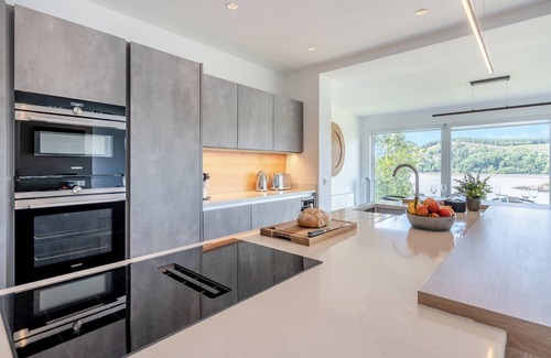 The most magnificent views of the Estuary, enjoyed from this stunning luxury coastal property in the sought after village of Kippford.. 12 steps to entrance.
