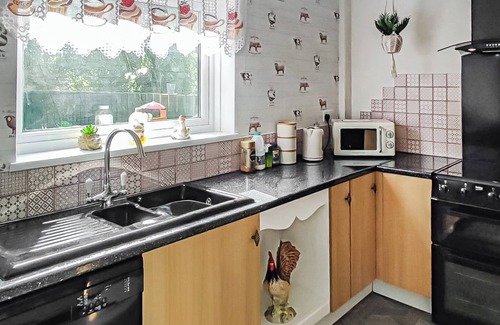 Bedroom 3: Double (4ft 6in) Bed, Smart TV, Xbox 360. Gas central heating, electricity, bed linen, towels and Wi-Fi included. Travel cot, highchair and stairgate. Welcome pack. Enclosed front garden with sitting-out area and garden furniture. Private parking for 2 cars; additional on-road parking. No smoking. Please note: There is a step in the garden.. This property has been fully renovated and provides homely charm. A cosy living room with a feature fireplace is located at the front of the property, an ideal spot to wind down after a day of exploring. The dining room at the rear of the property is where the whole group can enjoy a hearty meal together. From here there is direct access to the kitchen, equipped with everything you need for a comfortable stay. The first flight of stairs leads to a master bedroom equipped with a kingsize bed. To the rear of the property is a double bedroom. The shower room, also on this floor, has a shower cubicle, toilet and sink. A further flight of stairs leads to a bedroom with a double bed, Smart TV and Xbox 360. Overall, this property is ideal for family gatherings, seeking excellent value for money in a desirable location.