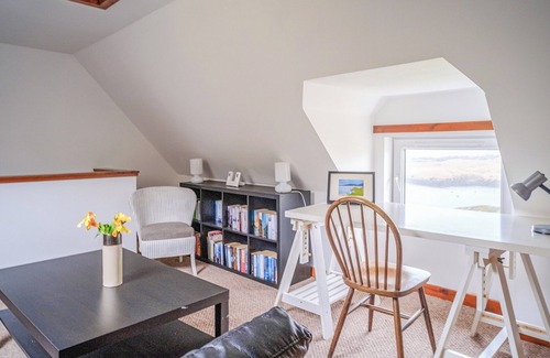 There’s a separate steep staircase to the sitting room above the kitchen/dining/utility room. It’s a great space and has a perfectly positioned writing desk by the window to take in the view. There is also an double sofa bed (for flexible sleeping arrangements).