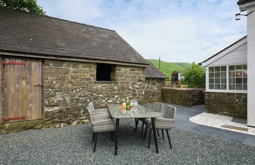 Bathroom: Bath With Shower Over, Heated Towel Rail, Toilet. Oil central heating, electricity, bed linen, towels, Wi-Fi and logs for wood burner included. Highchair available on request. Welcome pack. . Lawned rear garden with patio and garden furniture. Private parking for 3 cars. No smoking. Please note: This property has a natural water supply from a borehole.. Nestled in the fabulous Welsh countryside, this charming stone cottage is in an idyllic location on the owner’s farm, surrounded by stunning scenery and situated on the Glyndwr’s Way, a popular national trail in mid-Wales. The combination of breath-taking views and a wonderfully relaxing interior makes Dolwen Isaf the perfect place for a tranquil, countryside escape for six. Upstairs you can enjoy scenic views across the farm in the morning and stargaze into the dark sky at night. There are three bedrooms: one with a kingsize bed, a second with a double bed and the third with twin beds, and the family bathroom is located in the centre. The ground floor comprises all the living areas, open plan well-equipped kitchen and dining area for all your cooking needs and in the homely living room, your eye will be drawn to the beautiful wood burner. This rustic centrepiece will keep you cosy on chilly evenings, as you relax on the sumptuous sofa and enjoy a movie on Netflix. Plus, there’s a ground floor bathroom for added convenience after you’ve been out on your adventures.