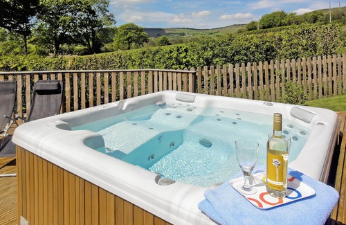 Separate Toilet.. Underfloor central heating, electricity, bed linen, towels and Wi-Fi included. Travel cot and highchair. Welcome pack. Enclosed garden with decked area and garden furniture. Hot tub (private). Electric car charging station. Private parking. No smoking. Please note: There are steps to the garden and hot tub. Couples and family bookings only.. Stylish, well-equipped, warm and comfortable with a green air-conditioning unit, this lodge, one of a pair, has its own private hot tub and enclosed garden, a swing chair on the veranda; a perfect spot for chilling and watching the countryside views. Situated on a family farm, 4 miles from the market town of Rhayader, Ash Lodge is in the beautiful countryside; there are farm walks and nature trails from the door. Easy road access with the spectacular Elan Valley, 5 miles, for walking, cycling, fishing, bird watching and pony trekking. Dark sky experience with stargazing and photography available (bookable in advance with the owner directly). Red kite feeding station, Welsh Crystal Factory, cycle hire, indoor pool and play barn all within 4 miles. Visit museums and art galleries or the coastal nature reserve of Ynyslas Sands and the dolphins of Cardigan Bay. Decorations and tree are provided for Christmas bookings. Shops and pub 4 miles.