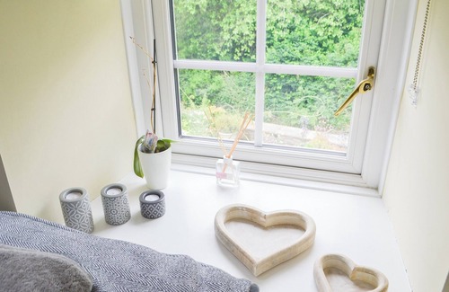 Bathroom: Bath With Shower Over, Toilet. Electric central heating, electricity, bed linen, towels and Wi-Fi included. Travel cot and highchair. . Enclosed tiered garden with conservatory, garden furniture and barbecue. Bike store. Private parking for 4 cars. No smoking. Please note: There are 3 steps to an unfenced stream, 3 yards from the property.. Wisteria Cottage is so charming with its tiered garden including seating areas, tinkling stream at the rear and a perfect detached conservatory, what is not to love about this well-proportioned detached cottage? Renovated throughout and retaining many original features oozing charm and character. This is a perfect retreat for couples, families or friends who want to have some relaxation in pretty surroundings. The detached conservatory is perfect for escaping for a few quiet minutes listening to the little stream.