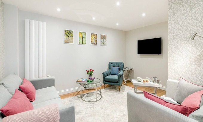 On the ground floor, you will be welcomed into the dining room which offers ample space should you wish to relax with a book or play board games with friends and family. You’ll also find a well-equipped kitchen with all the modern appliances you need to whip up some delicious meals during your stay. On the lower ground floor is the spacious sitting room with Smart TV and ample comfortable seating. A piano is available for guests with a musical interest, as well as a single sofa bed which can also be used as a nice place to relax. The lower ground floor also has a shower room and is entrance to the rear garden with a small outdoor space to enjoy the views. The first floor has three beautifully decorated bedrooms, two with single beds and the other a double bed. The family bathroom is also located on this floor.