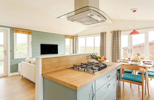 Luxurious lodge in a secluded location with stunning sea views of Sandymouth Bay, perfect for a luxury break with family or friends. Sleek master double with contemporary en suite shower and two comfortable twin rooms along with a spacious family bathroom featuring shower over bath. A modern and contemporary open-plan living area with ceiling to floor windows features stylish kitchen with American style fridge/freezer, dishwasher and washer/dryer, and elegant solid wood dining area. Living area benefits from smart seating, 40" Flatscreen TV and views of the beautiful coastline. French doors leading onto outdoor decking great for soaking up the glorious views.
