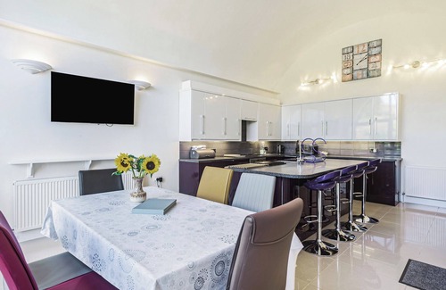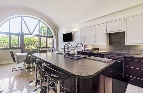 Bedroom 3: Single (3ft) Bed. Oil central heating, electricity, bed linen, towels and Wi-Fi included. Travel cot and highchair. Welcome pack. Enclosed decking with garden furniture. Separate gravelled area. Private parking for 3 cars. No smoking. Please note: There is a small covered pond in the grounds. New Barn Reservoir is set amongst the lush Devon countryside and less than a mile to the beach. This converted, detached water reservoir is charming and unique with many interesting features. It has domed high ceilings, archways and big windows, offering amazing views across the countryside. Situated at the top of Ringmore, in a quiet location set away from the village of Shaldon, where your nearest neighbours are the alpacas. The property has been tastefully converted and offers comfortable bedrooms and a spacious kitchen/dining area. There are two outside seating areas, ideal for watching amazing sunsets and enjoying al fresco dining. This is the perfect spot for families and friends to get together.