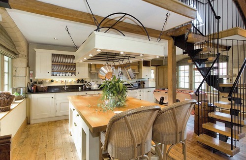 Study: Galleried,. Oil central heating (underfloor in bathrooms), electricity, bed linen, towels, Wi-Fi and fuel for multi-fuel burner included. Travel cot and highchair. . Enclosed lawned garden with courtyard, patio, summerhouse, patio and garden furniture. Private parking. No smoking.. Dating from the early 1900s, and formerly a reading room, this detached holiday property has been sympathetically restored with beautiful beams, exposed stonework, stone and oak floors, glass hallway and sumptuous furnishings and fabrics. Thimbleby village is on the edge of the North York Moors National Park, with a wealth of interesting walks and mountain bike trails through spectacular moorland. Visit York, Helmsley, Castle Howard and Fountains Abbey. Cod Beck Reservoir nearby. Shops and pubs 1 mile.
