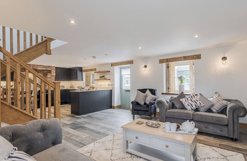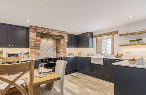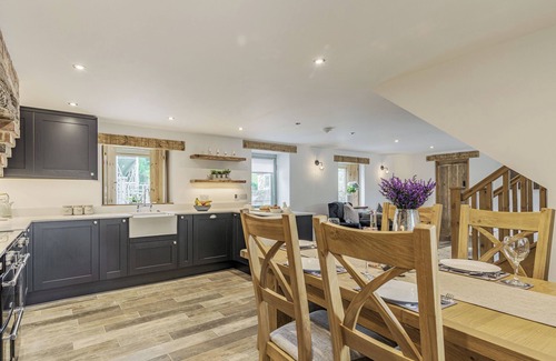 Bathroom: Bath, Walk-In Shower, Toilet. Oil central heating (underfloor in living area), electricity, bed linen, towels and Wi-Fi included. Travel cot and highchair. Welcome pack. Enclosed garden with sitting-out area, garden furniture and BBQ. Hot tub (private). Private parking for 3 cars. The charging of electric cars at the property is not permitted. No smoking.. Enjoy quality family time by staying in the beautiful area of the Peak District on the owner’s working farm, where there is no light pollution and a great location for stargazing at night. Riverside Dairy (Ref UK36614) is one of two holiday properties finished to an extremely high standard and the owner takes great pride in ensuring you have the perfect stay. The property offers a modern and open plan living space providing you with a well-equipped kitchen with a fantastic range cooker sitting perfectly in the alcove, there is a dining table to seat all six guests and a cosy sitting area boasting a floor-length window to take complete advantage of the stunning views that surround you. This living area has underfloor heating and there is a utility room with a washing machine. The first bedroom is located on the ground floor, which has its own en-suite. Upstairs are two further fantastic bedrooms, both with super kingsize zip and link beds, and a family bathroom with a walk-in shower and separate bath. Any beds can be made into twins upon your request.