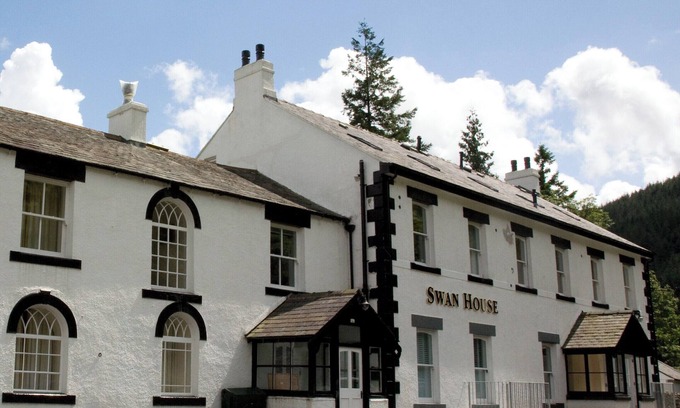 Bathroom: Bath, Cubicle Shower, Toilet. Gas central heating, electricity, bed linen, towels and Wi-Fi included. Cot available on request.. Decked area. Garden with sitting-out area (shared with other properties on-site). Parking for 2 cars. No smoking. Visit England 4 Star. Please note: There is a pond in the shared garden.. This luxurious contemporary three bedroom apartment, forms part of an exclusive development in the former Swan Hotel, a 17th century coaching inn and is luxuriously furnished and equipped throughout. The open plan living space has a large window affording views out towards the attractive rear garden and Skiddaw and Keswick beyond, while the kitchen is hand built painted solid oak with black marble worktops. The decked area has wonderful views of the valley and fells beyond and there is an immaculate landscaped communal garden with pond.