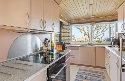 Welcome to this comfortable holiday home, where light-coloured wooden elements, tasteful furnishings and large windows create a real feel-good atmosphere. Start the day with a coffee in the light-flooded dining area, prepare delicious meals in the cosy kitchen and listen to the crackling of the fireplace while you relax with a good film on the comfortable sofa or spend time together playing a board game.