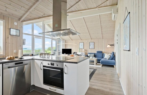 Your holiday home awaits you with a spacious terrace, a wonderful view of the South Funen archipelago and a large plot of land. There is plenty of space for various leisure activities. Start your day with a cup of coffee at the dining table with a beautiful view of the garden and the sea beyond and then prepare a delicious family breakfast in the open-plan kitchen. This is ideal for cooking together. The cosy sofa corner invites you to linger and relax.