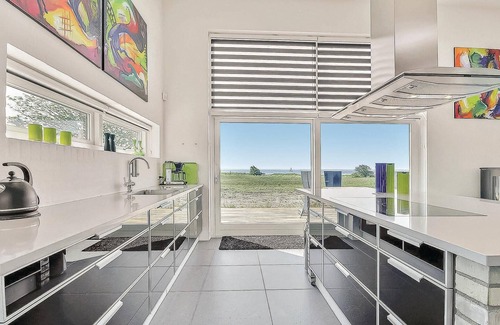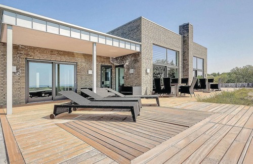 Already when you arrive you notice the special. The house is truly spoiled by beautiful details, because it is of modern design, both in architecture and equipment. In addition, there is the unique location and panoramic views of the sea. From the property you can directly reach the water. The spacious living room is open to the kitchen. The fireplace in the living room and the beds with adjustable slatted frames in the bedrooms provide coziness. One bathroom is en suite. In the large bathroom there is the whirlpool and sauna. When you come home from swimming, you can also be active on the large property. You also have an outdoor shower. The terrace is sunny and partly covered, also a barbecue provides pleasant hours. When you return home from successful fishing trips, you can arrange your catch at the outdoor filleting place. Nearby you will find charming Sønderborg to stroll and wander.