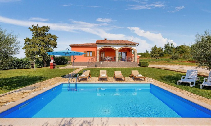 3 bedroom beautiful home in Visnjan is located in Rapavel. 3 bedroom beautiful home in Visnjan provides accommodation, featuring Barbecue/Outdoor Cooking, Internet, Kitchen, among other amenities. This House features Barbecue/Outdoor Cooking, Internet, Kitchen, to make your stay a comfortable one.