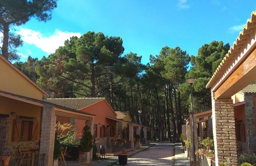 The cabin is located within a rural complex of more than 3 hectares of pine forests, with swimming pools for adults and children, sports courts for tennis, basketball, grass football, paddle and badminton, playground with table football, ping pong and vending machines 24h , breakfast cafeteria, playground, garden areas, reading room and work area and WiFi