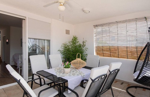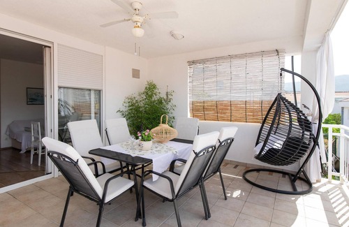 The beautifully and simply furnished apartment is an ideal oasis of relaxation. Drink your morning coffee on the spacious terrace and enjoy the beautiful view of the sea and the impressive Peljesac Bridge. From the accommodation you can reach the beautiful sandy beach in just a few minutes, where you can sunbathe and refresh yourself in the Adriatic Sea. Enjoy a delicious ice cream and the view of the gigantic mountains behind you.