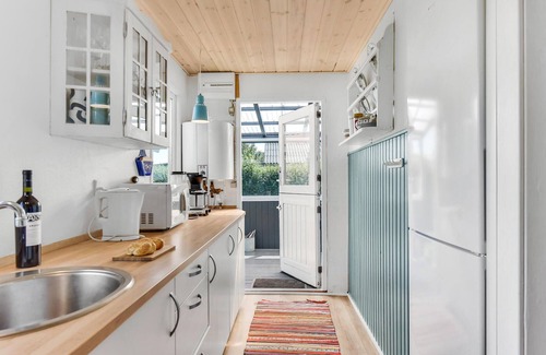 This cosy holiday home is located near a really good and child-friendly sandy beach and in a holiday home area. The house has several good terraces, two of which are covered and one is closed on all sides like a conservatory. The house has a lovely living room with a good dining area and a sofa group near the wood-burning stove and a well-equipped kitchen. In the holiday home itself there are two good bedrooms and an annex with a further four beds in bunk beds. The annex is easily accessible via the terrace. There are two bathrooms in total - one in the house and one with access from the covered terrace. The house also has a carport so that your car is protected from the sun and rain.