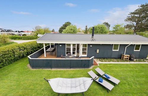 Enjoy your holiday in this charming holiday home in Kongsmark Strand. The interiors are tastefully decorated and offer all the comfort you need for a relaxing holiday. The spacious living room with fireplace invites you to relax, while the well-equipped kitchen allows you to prepare delicious meals. The bedrooms offer peace and cosiness for a restful night's sleep.