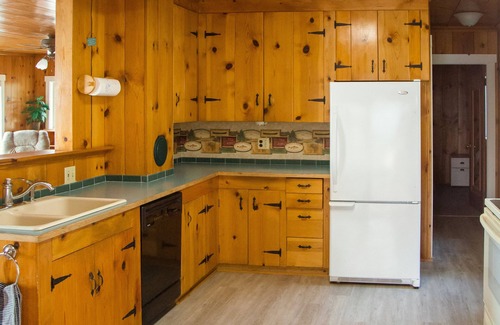A private dock is included with ample space to tie up a couple boats, canoes or kayaks. Swimming is great right in front of the house as is the fishing. Fish can be caught right off the end of the dock. There is a yard between the lake and the house with a fire pit. 3 kayaks Are available for your use.
