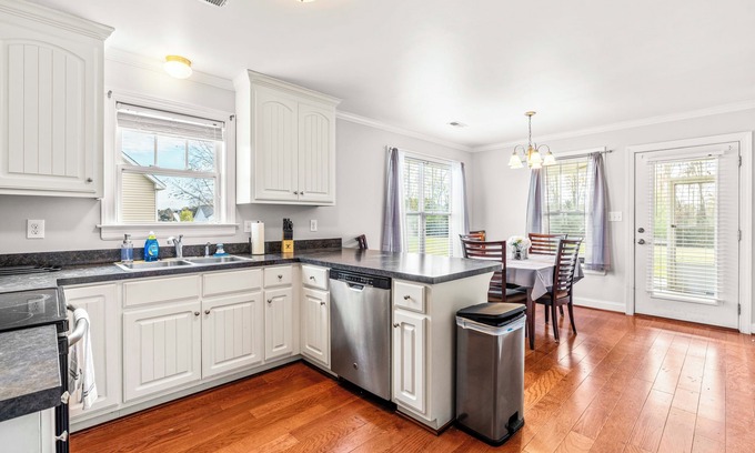 Located in Kenly, this adorable house offers 3 bedrooms including a king, queen, and double bed. With amenities like a screened in patio, full kitchen, 65" 4K TVs, and a washer/dryer, guests can relax in the bathtub after a day of exploring. This enchanting property is the perfect retreat for your getaway. We look forward to welcoming you to our place.