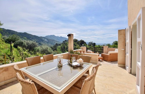 Spend your holiday in this beautiful house. The lovingly furnished interiors offer you modern comfort and an inviting ambience, while the spacious sun terrace with breathtaking views of the rolling hills and the green valley invites you to relax. Enjoy the bright rooms with high wooden ceilings and let yourself drift away from your everyday holiday life while cooking, eating, playing or relaxing. The tasteful design and quiet location create a perfect oasis of relaxation. Access to the house is via a small, steep road that leads to your idyllic retreat. The main car park is located approx. 60 m from the house.