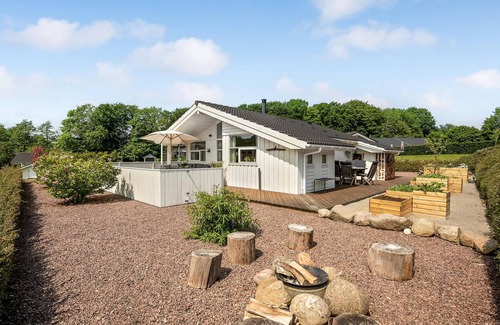 In the quiet village of Loddenhøj, this beautiful vacation home welcomes you. It is bright and has a large kitchen-living room. Three bedrooms accommodate good beds and plenty of space. In large bathroom is the washing machine. On the partly covered terraces, it goes around the whole house, you can be undisturbed.