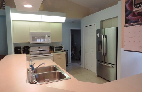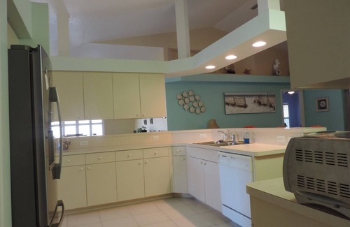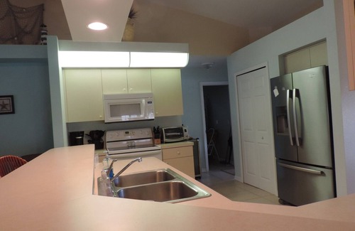 New to the 2017 rental market. Bright and cheery house with tile and bamboo flooring and plantation shutters. The mostly wooded, landscaped back yard is a peaceful, natural backdrop for the screened heated pool area (extra charge for pool). The master bedroom (king) with ensuite offers privacy from other bedrooms. The walk-in shower is over-sized and there is plenty of closet space. The other 2 bedrooms (queen; two twins/TV) are separated by a full bath and there is a door to close off this area from the rest of the house for more privacy. This property is on a quiet street yet close to restaurants, shopping, beaches, and the Cape Haze Pioneer Bike Trail.